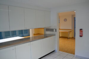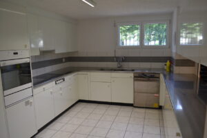 • Grosser Raum (ca. 50m2): komplett eingerichtete Küche, Industrie-Geschirrspüler, Geschirr und Mobiliar für max. 50 Personen.