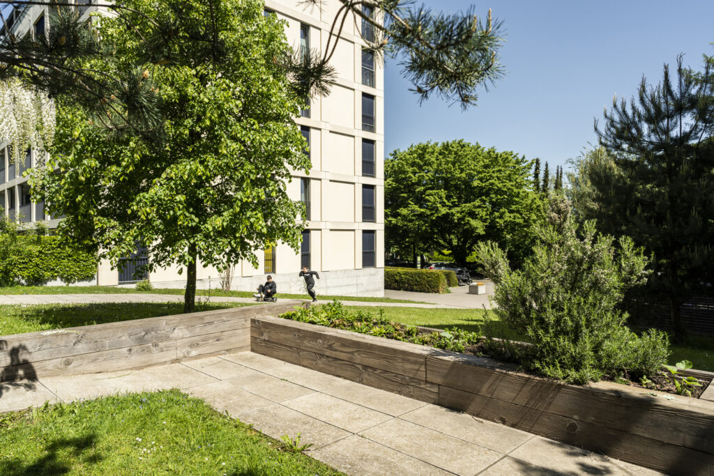 An der Künzlistrasse 15/15a führen die Pflegezentren der Stadt Zürich im EG und 1. OG eine Pflegewohngruppe, die auf Bewohner*innen mit Demenzerkrankung spezialisiert ist. In vier Lofts im EG an der Wehntalerstrasse ist zudem eine private Kinderkrippe eingezogen.