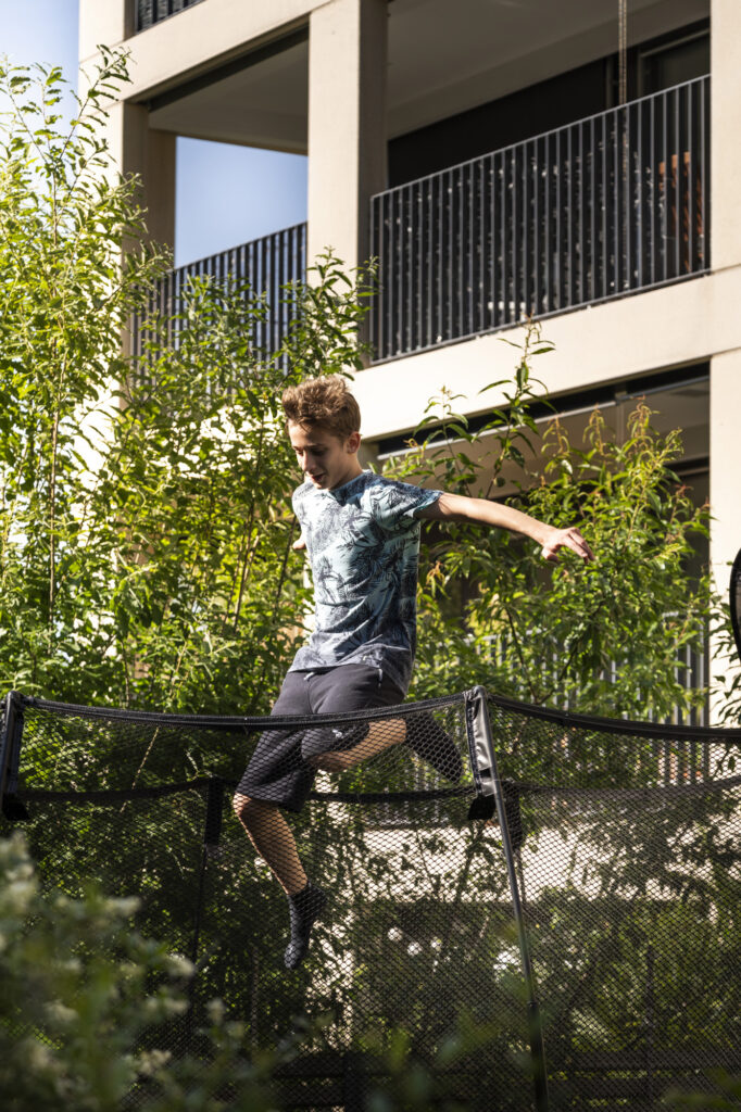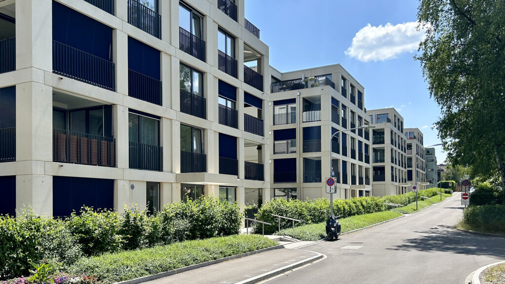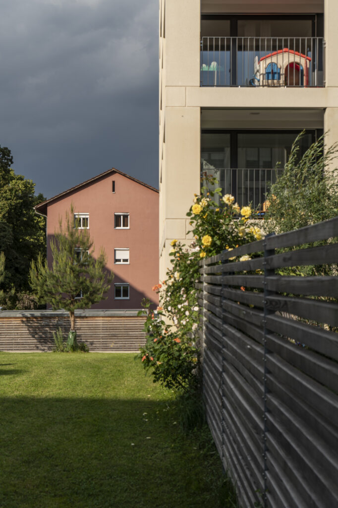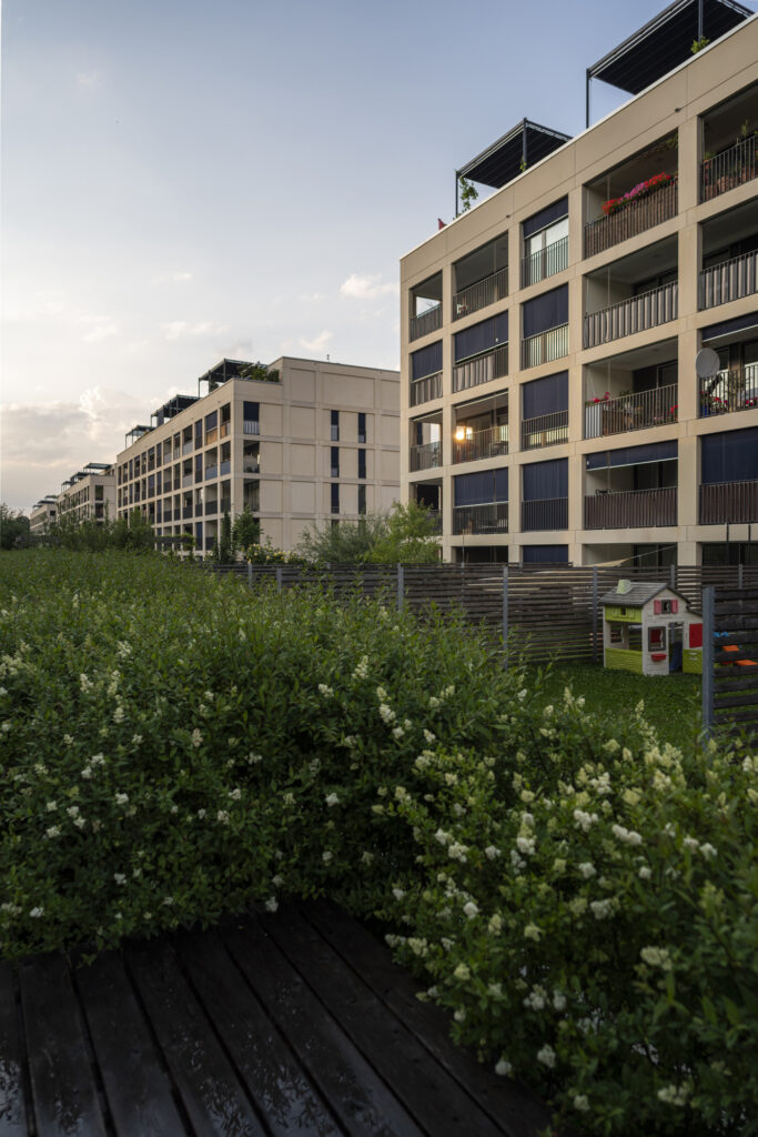 Neben den vorwiegend traditionell eingeteilten (Familien-) Wohnungen prägen grössere Lofts, kleine Atelierwohnungen, vier grosse Attikawohnungen mit eigenem Liftzugang, einige Gartenwohnungen sowie Dachgeschoss-Wohnungen mit grossen Terrassen das vielfältige Angebot. Auf den Dachflächen der Neubauten sind Photovoltaikanlagen installiert und die Aussenflächen naturnah gestaltet.