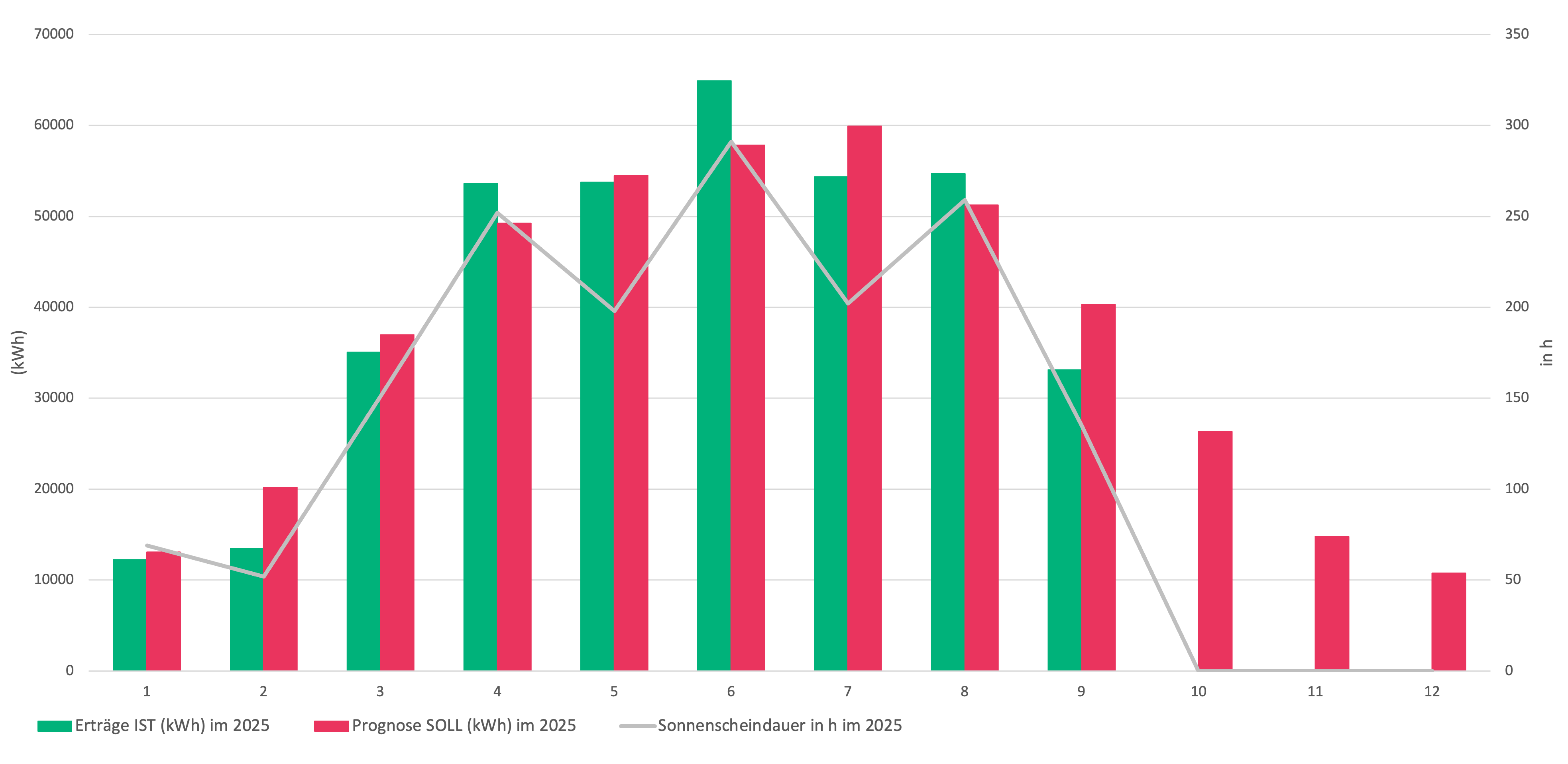 Die PV-Systeme liefen stabil und störungsfrei. Auch bei den kürzlich durchgeführten Jahreswartungen wurden keine Auffälligkeiten festgestellt – ein Zeichen für die hohe Zuverlässigkeit der Technik und den sorgfältigen Betrieb.