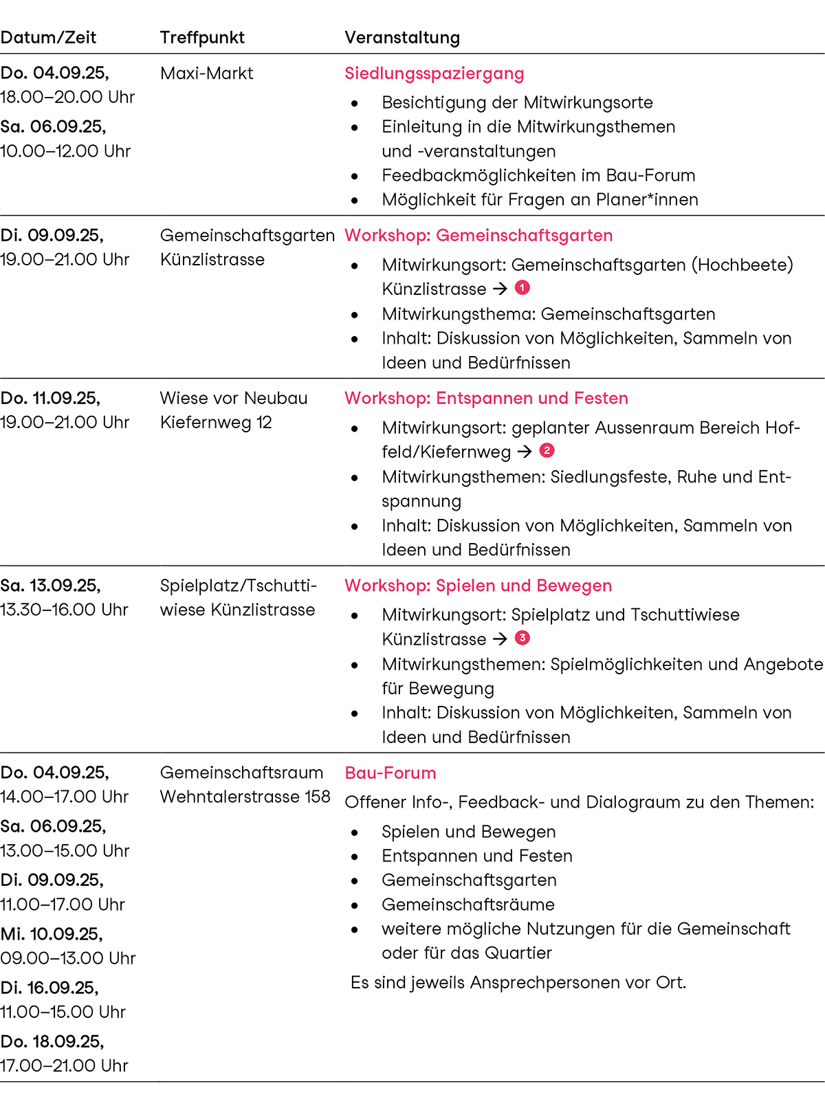 Wir machen bewusst nur Veranstaltungen zu jenen Themen, bei denen unsere Bewohner*innen auch wirklich etwas bewegen können. In anderen Bereichen wie zum Beispiel der Gestaltung der Wohnungen, ist das wegen zu vielen Abhängigkeiten nicht sinnvoll und möglich.